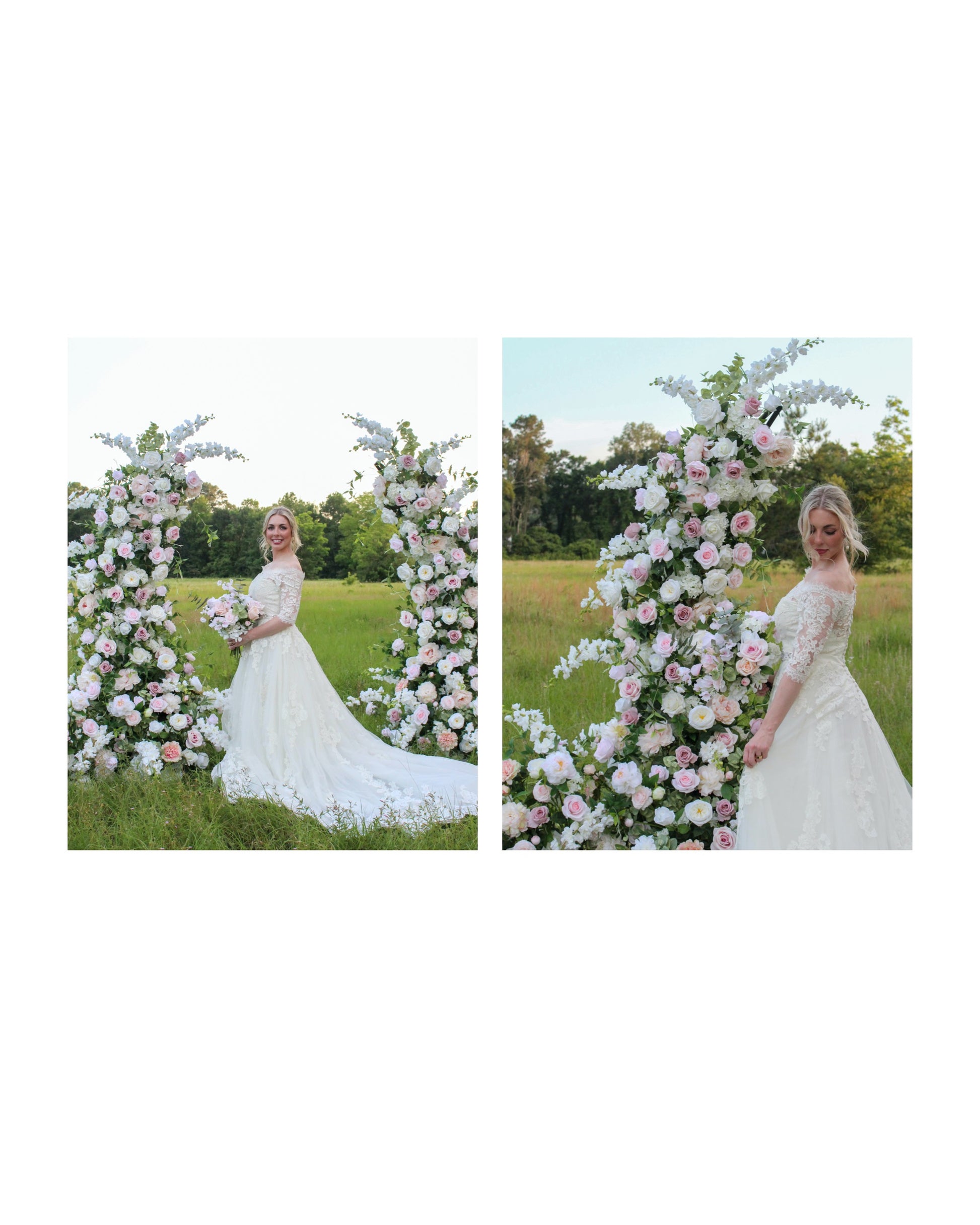 We also created two very large floral arrangements that can be placed at the base of the arch to make the bottom more full, but can be used in other locations. These come with the arches with the price already included with the rental.
