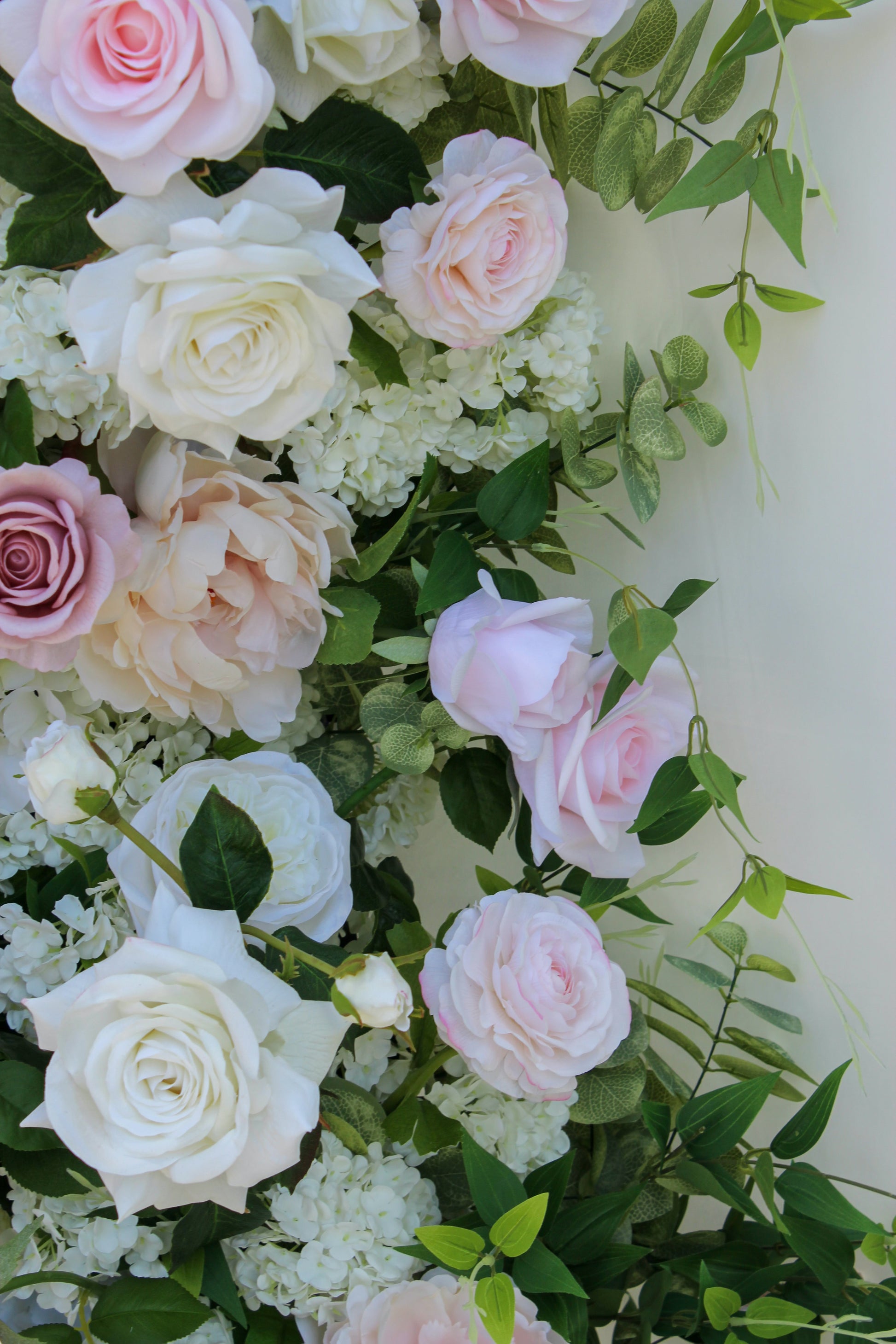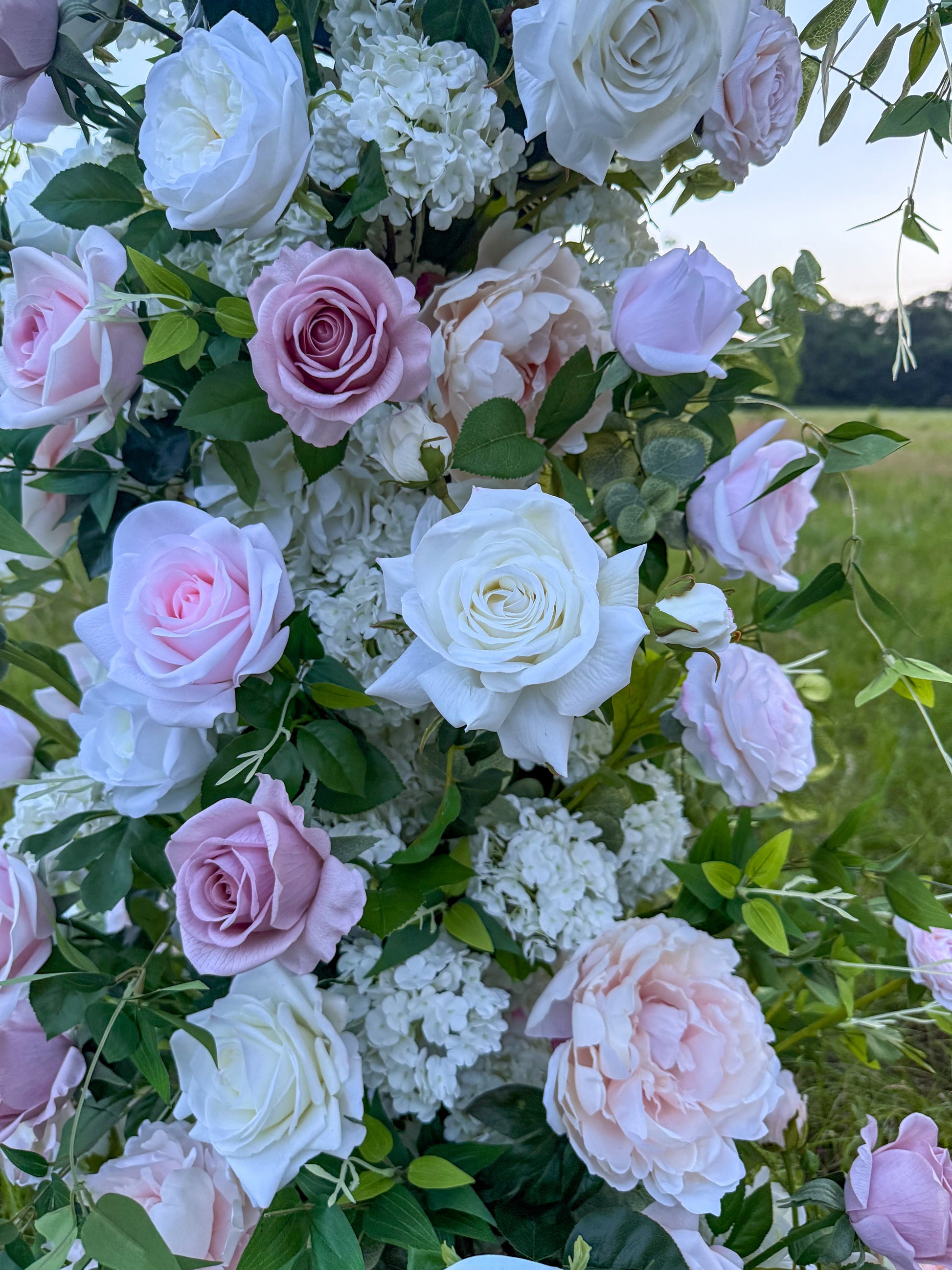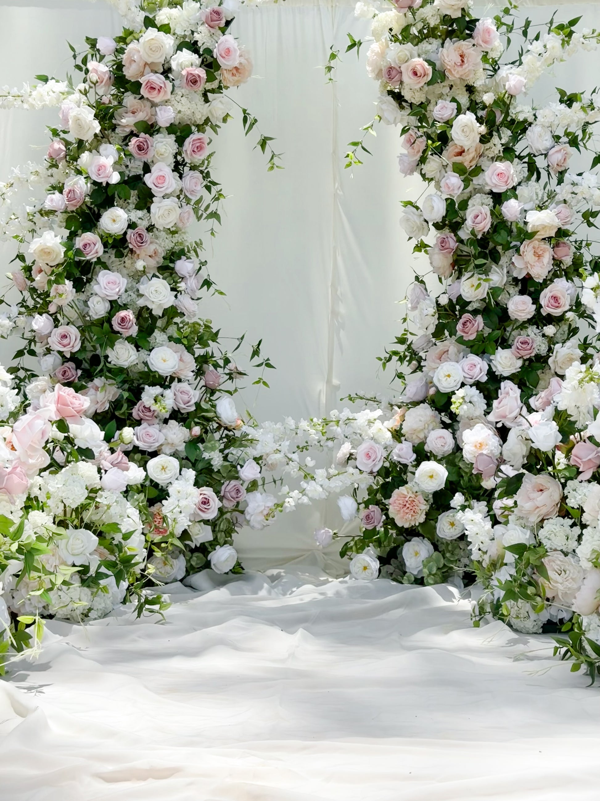 This arch has high quality flowers that have been globally sourced and they are indistinguishable from real florals. Most of the flowers on here are exact replicas of real flowers, printed in material that both looks & feels real to the touch, including the greenery!